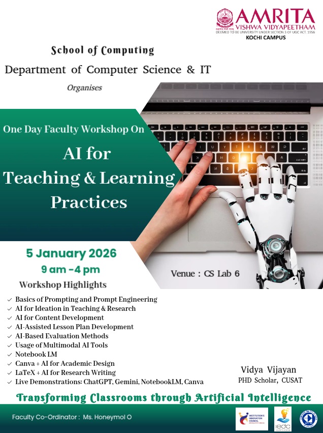 The Amrita faculty, who come from academically sound background, lay great stress on integral development of students. Frequent series of Expert Lectures are given by IT, Business, Management, Information Science, Commerce, Finance, Mathematics and Broadcast, Visual and Print Media Experts.