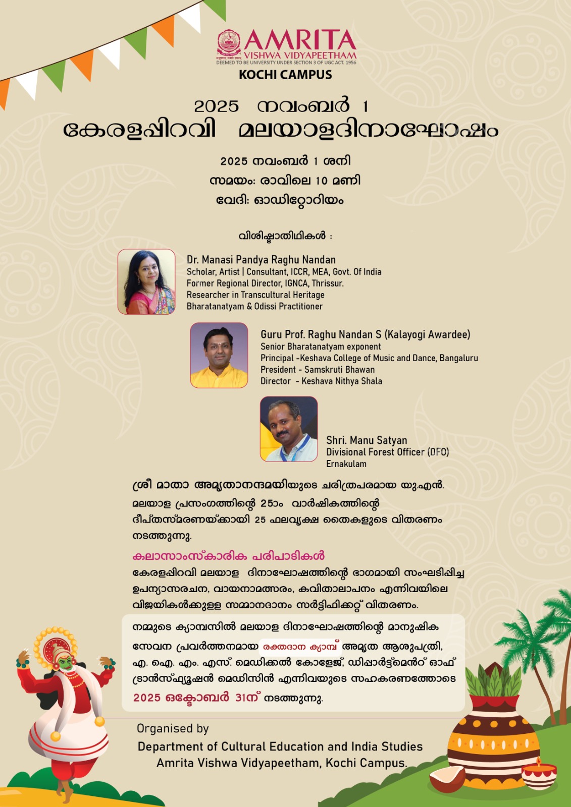 In alignment with the vision of Sadguru Sri Mata Amritanandamayi Devi, founder of the university, Amrita consistently emphasizes on research, instilling universal values, and the significance of moral education. The university is dedicated to sustaining ethics and fostering a strong sense of social responsibility in the current generation.